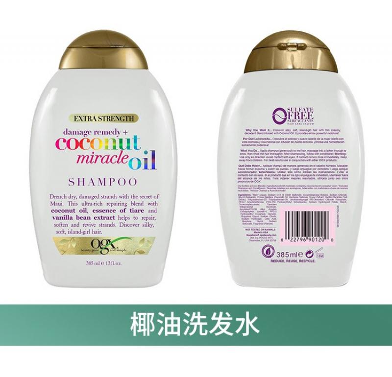 美国OGX欧古丝椰子奇迹深层修复滋润保湿 椰油洗发水 385ml/瓶